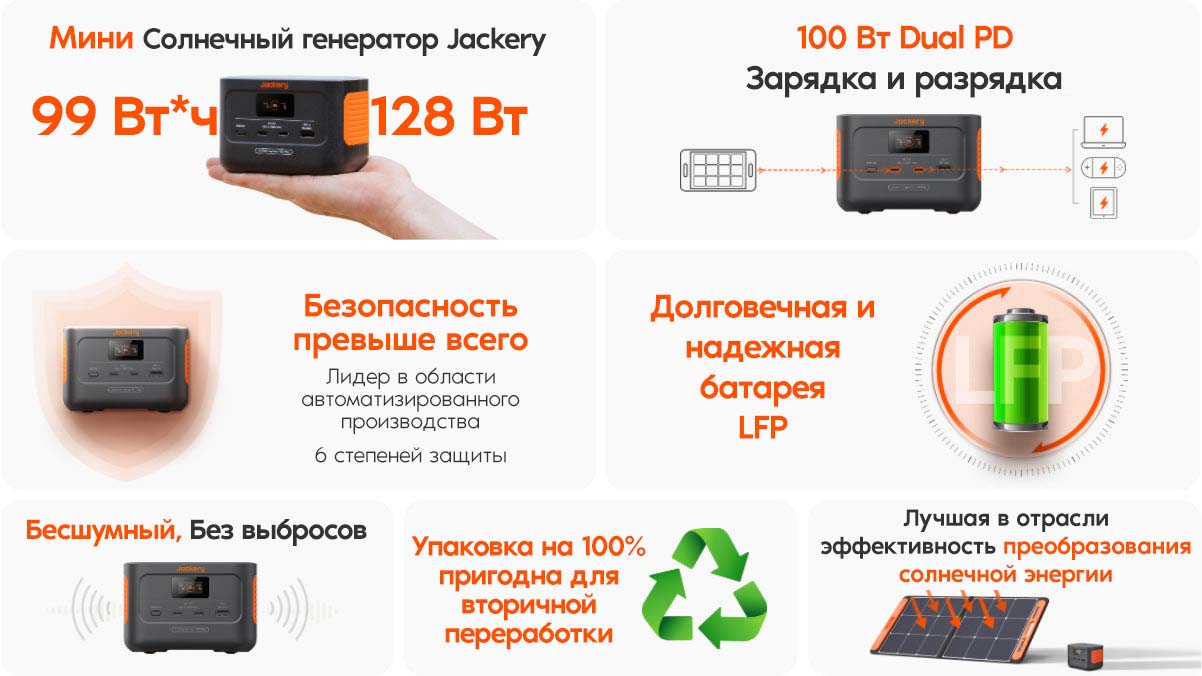 Зарядная станция Jackery Explorer 100 Plus - 99Вт*ч, 128Вт