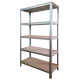 Металлические оцинкованные стеллажи с полками из ДСП на металлическом каркасе. Толщина полки минимум 50 мм. Нагрузка на полку - 120 кг. Боковины полок имеют ребра жесткости. Сборка конструкции - на болтовом соединении.